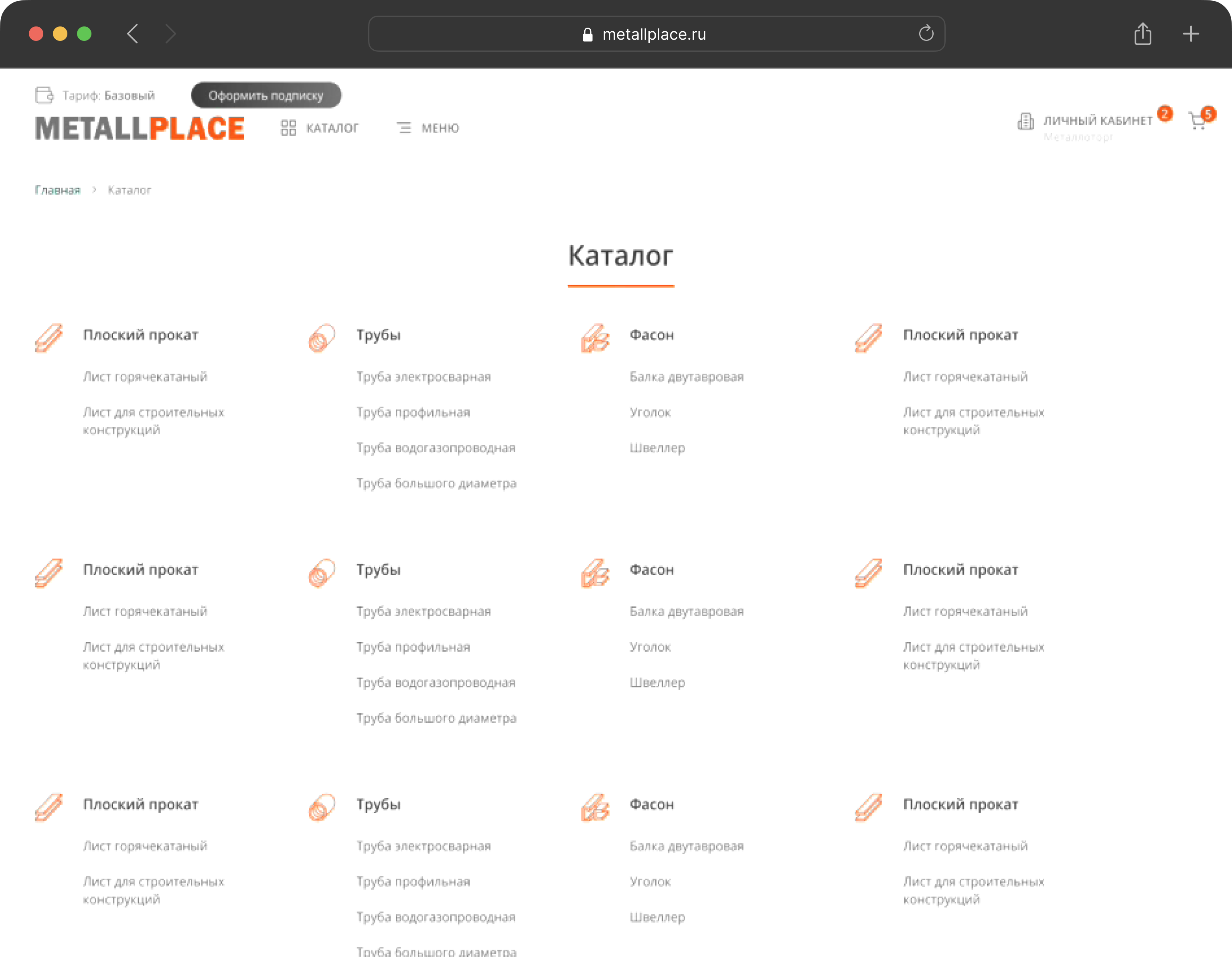 - Аналитический раздел (индексы металлопроката, новости рынка)