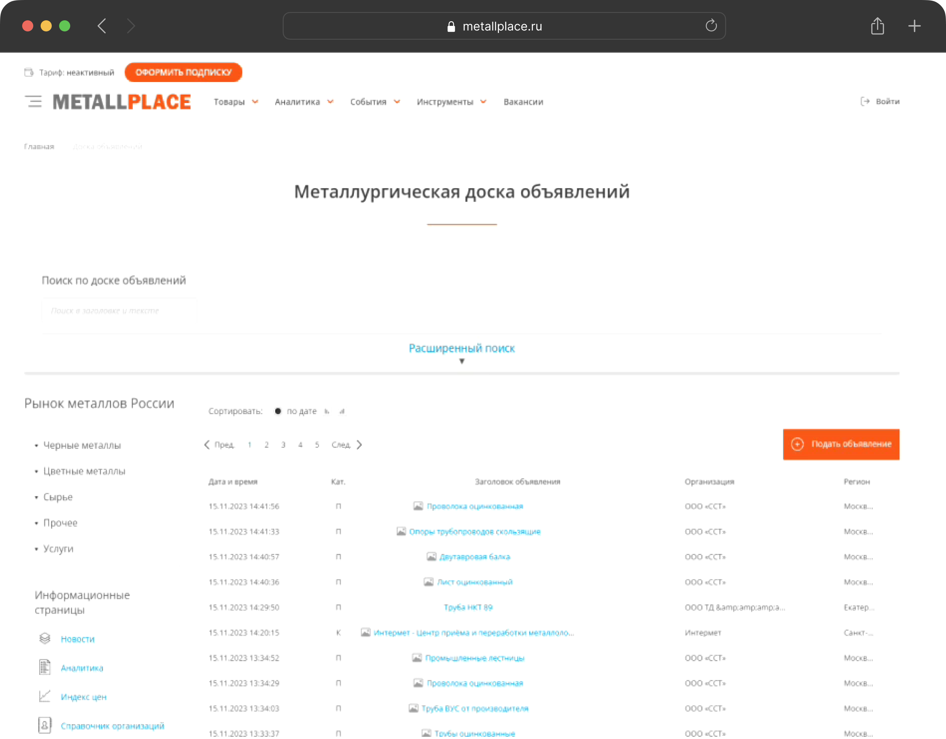 Одновременно с аналитическим разделом был запущена «Доска объявлений», где поставщик, покупатель или сам завод может разместить объявление о продаже, покупке или обмене товара/услуги.